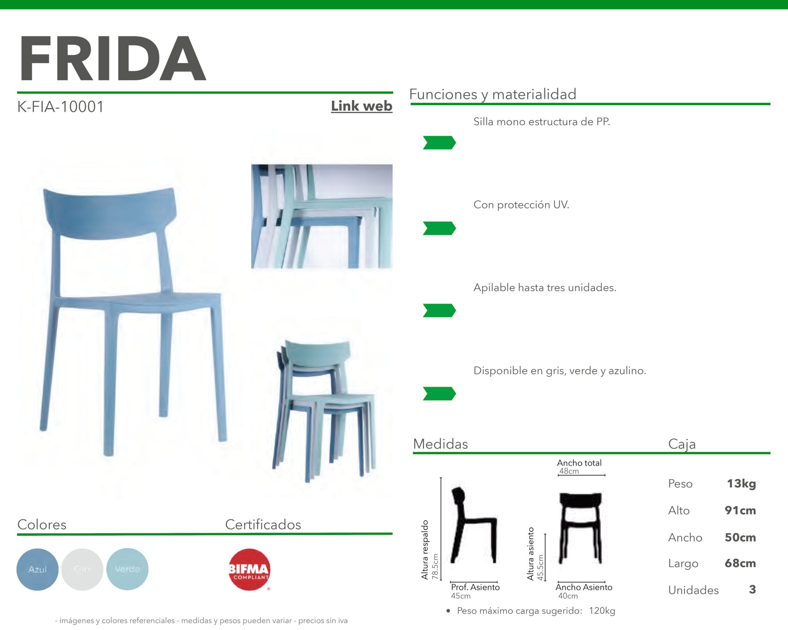 Silla mono estructura de PP. Con protección UV. Apilable hasta tres unidades.