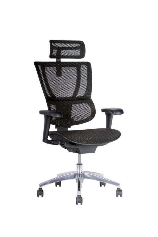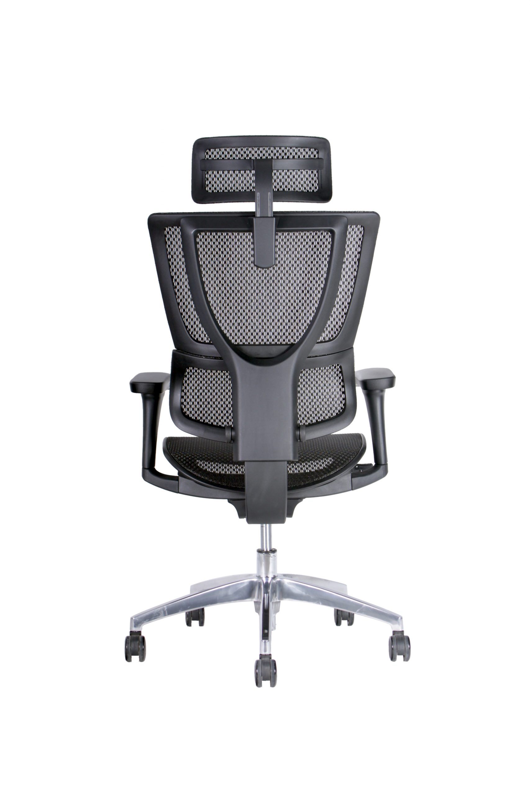 Silla con mecanismo sincrónico con desplazador de asiento, fijación de reclinación en múltiples posiciones y sistema de tensión auto pesante. Apoya cabeza de malla regulable en altura y ángulo. Respaldo de malla regulable en altura y soporte lumbar con ajuste de tensión. Apoyabrazos de PU regulables en altura, ángulo y profundidad. Asiento de malla con diferentes tensiones, gas de 120 mm, base de aluminio 680 mm y ruedas de PU negras de 65 mm.