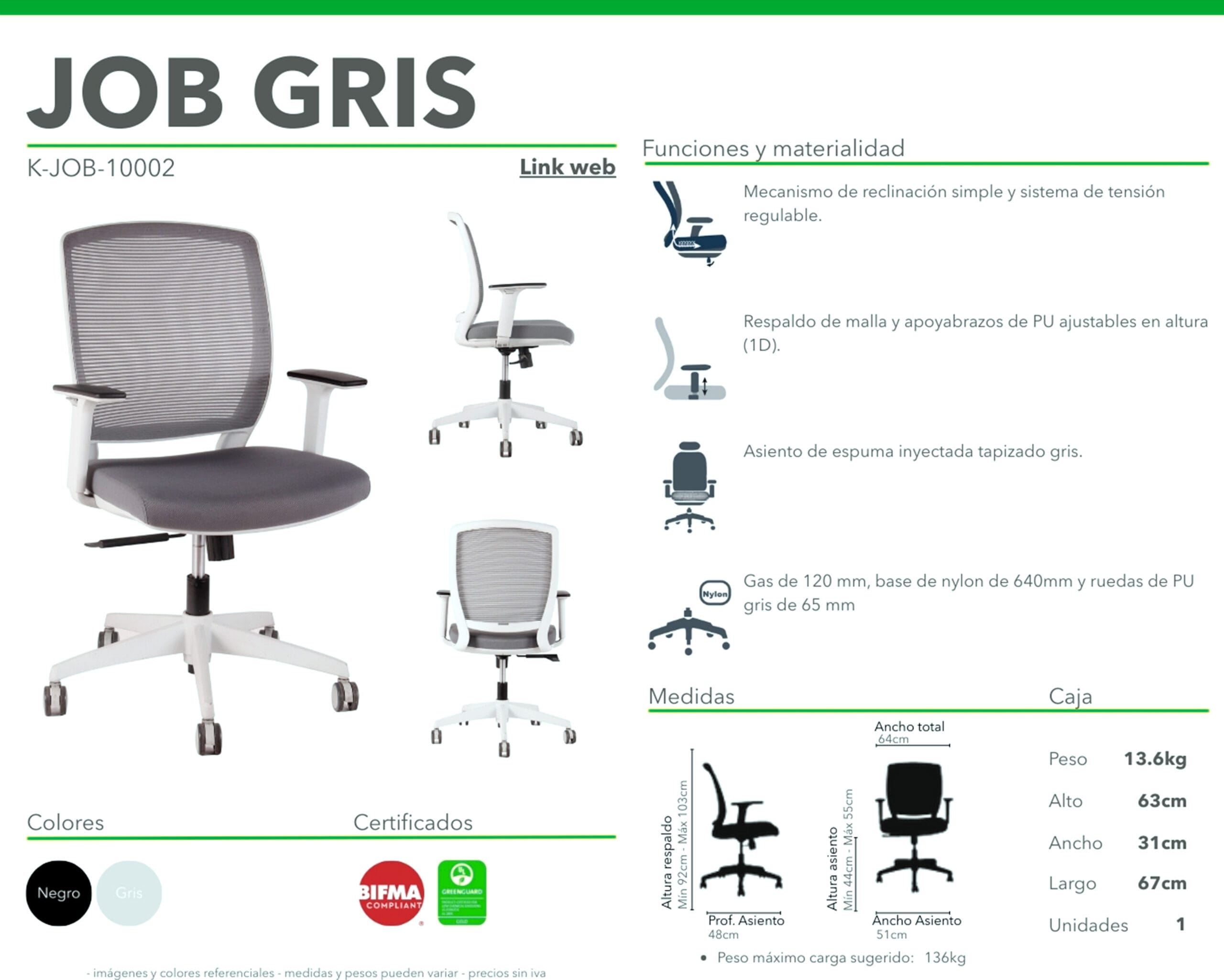 SILLA DE OFICINA JOB GRIS